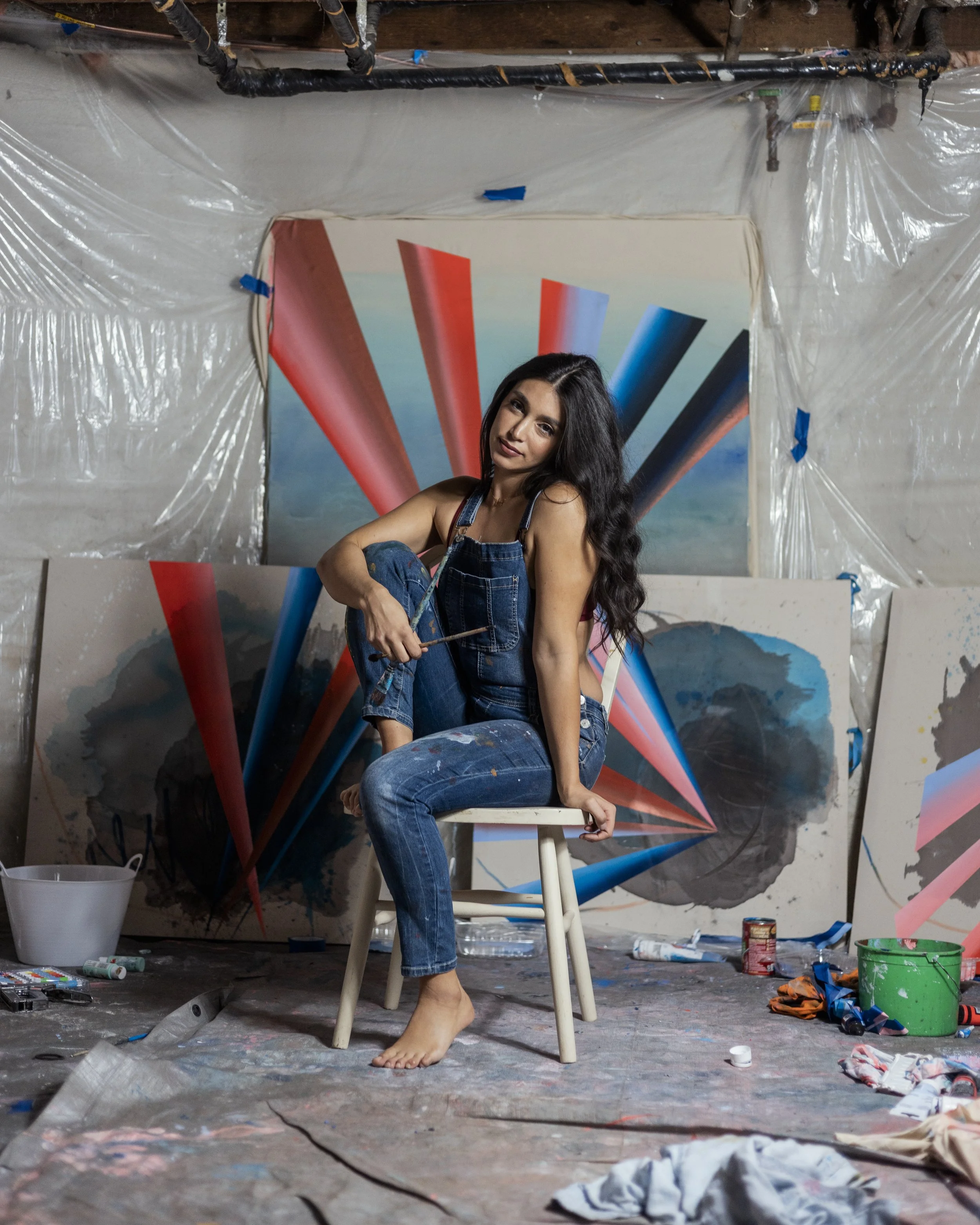 After leaving a decade-long abusive relationship, I found myself a single mother of four, rebuilding life from the ground up. Between returning to school and pouring my heart into raising my children, I never expected to find love again—and I was at peace with that. In the midst of starting over, I began a new body of work. I cut the wood, built the largest frames I had ever attempted, stretched the canvas by hand, and poured myself into painting.